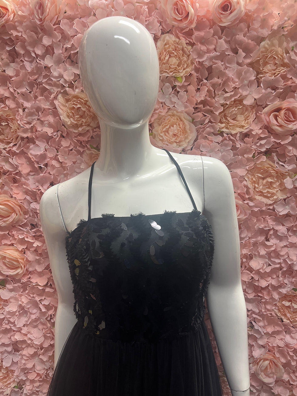 Black Sequin Gown w/ Back Straps - Size 10+